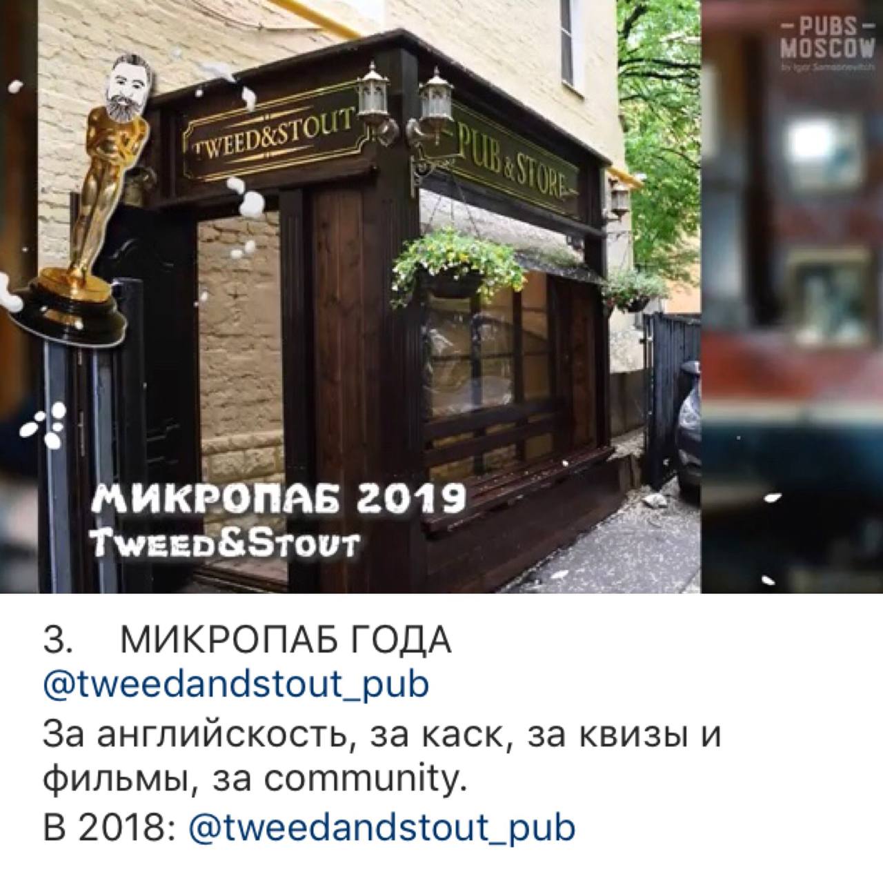Паб Tweed&Stout дважды признан лучшим микропабом Москвы в 2019 и 2020 годах