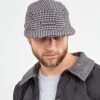 Твидовая 5-панельная кепка черно-белая (широкий козырек)